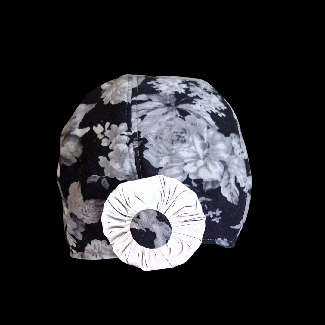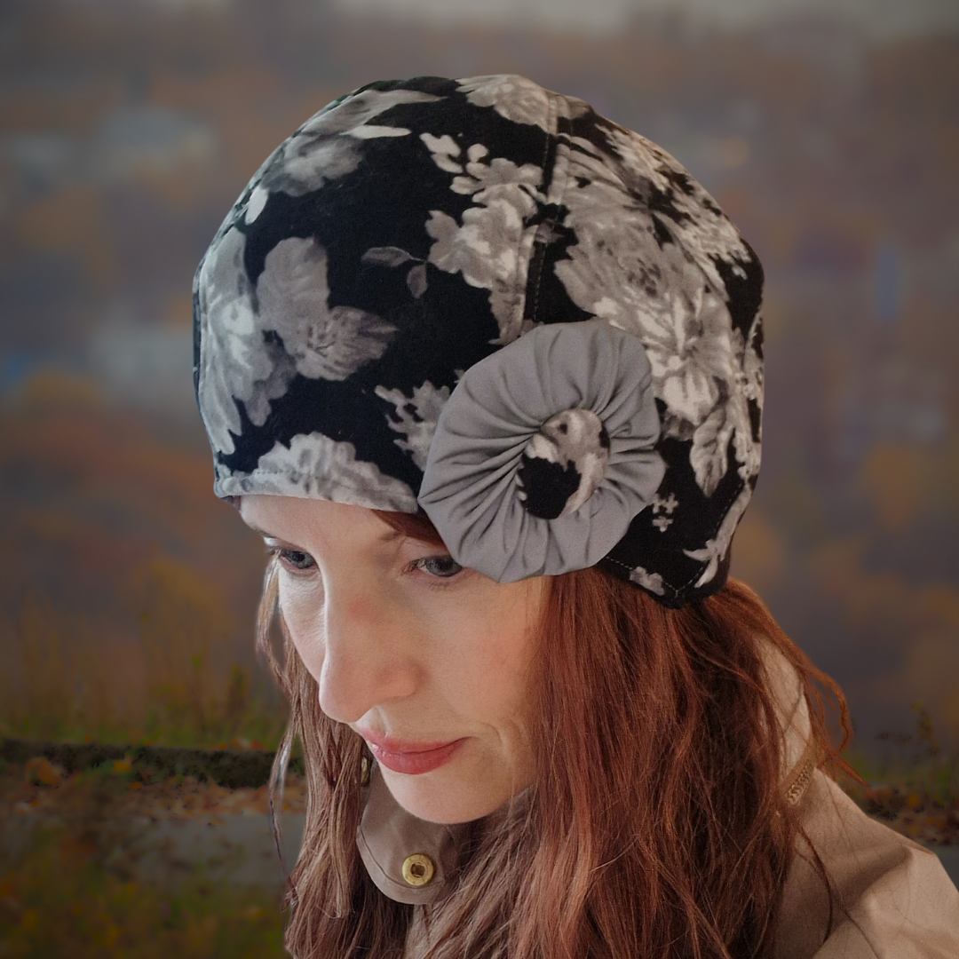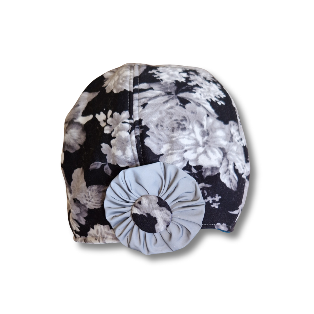 Tyget är stretchigt och mössan passar huvudstorlek på ca 55 - 58 cm.