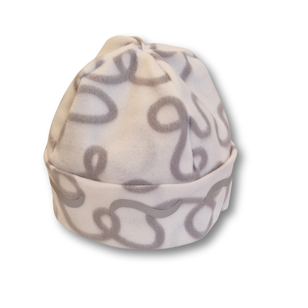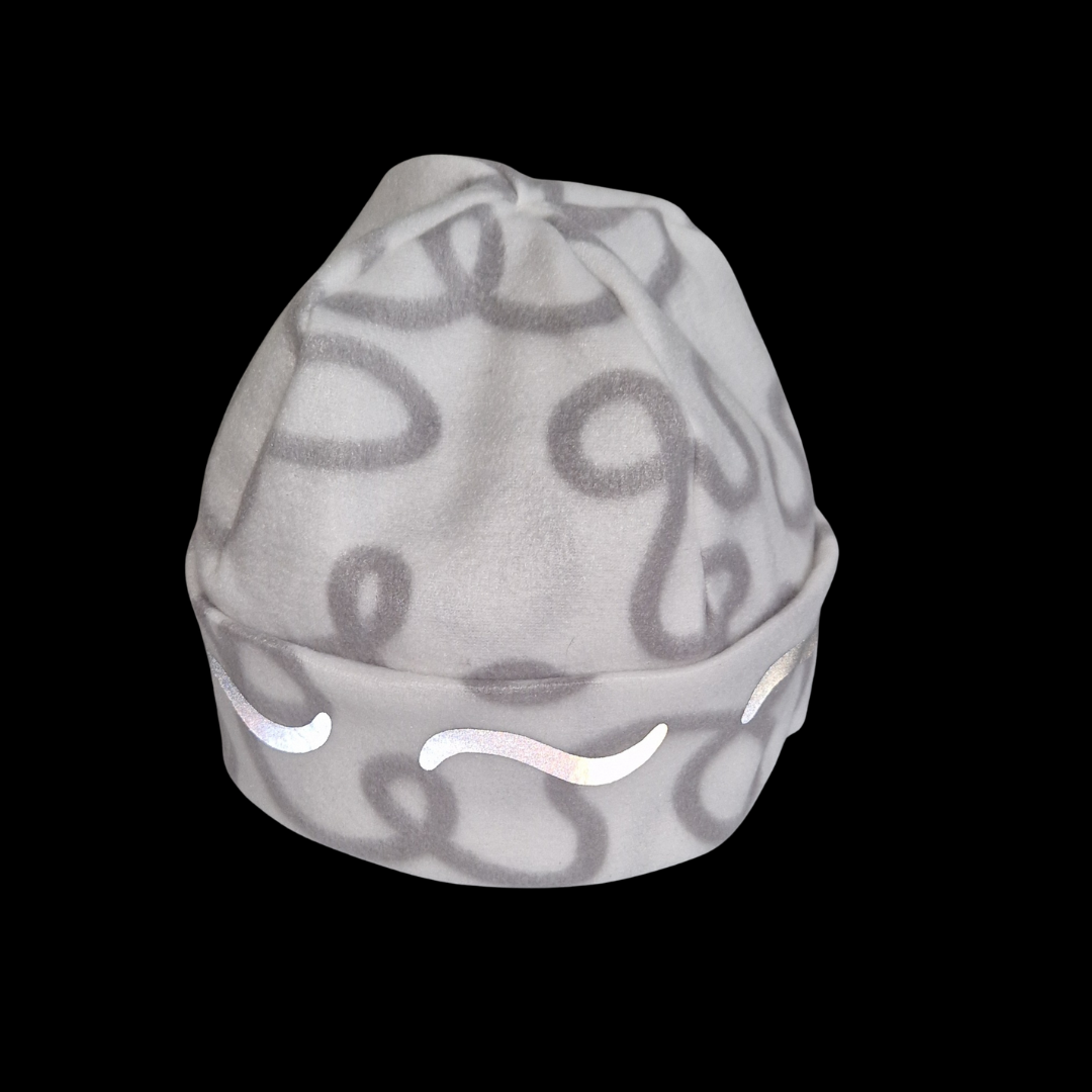 Mjuk skön mössa av fleece, med ett reflexmönster längs kanten, runt hela mössan.