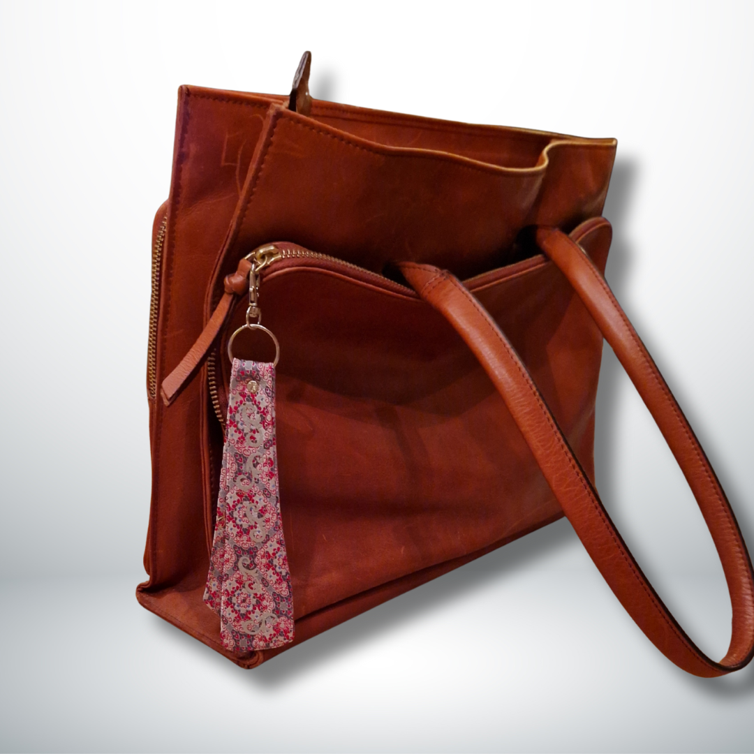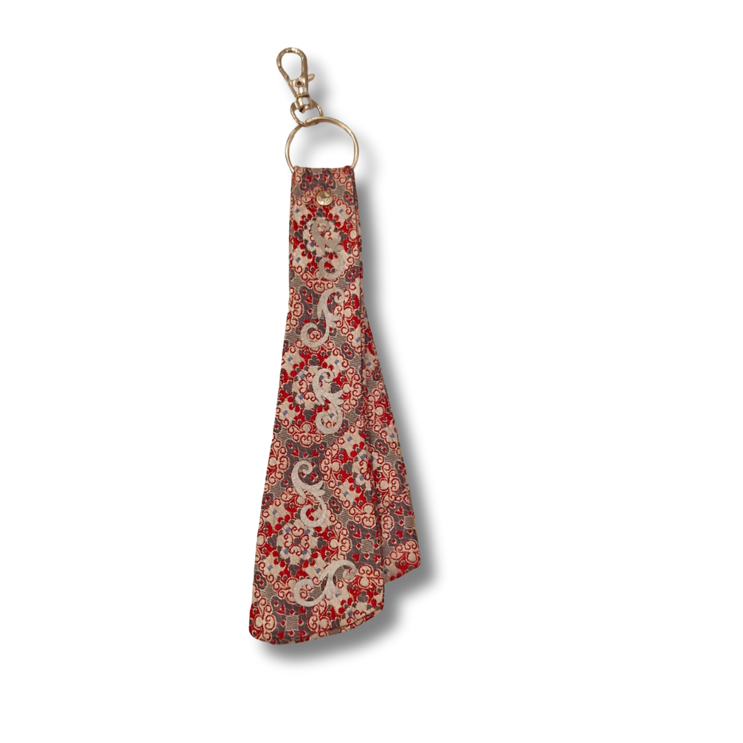 Nyhet! Hängande accessoar/väsksmycke tillverkad av tyg från en vacker återbrukad slips, med ett dekorativt mönster av reflexmaterial samt en liten kristall! Unna din (eller någon annans) väska en reflekterande accessoar nu när det är mörkt ute.